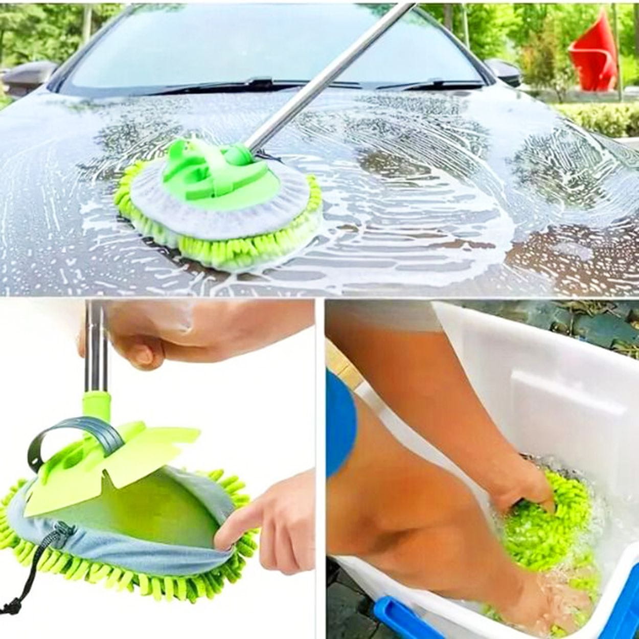 Krtača za pranje avtomobila s teleskopskim ročajem in zamenljivo glavo za brisanje. Poskrbite, da bo vaš avto čist brez truda! Ta teleskopska krtača z mehko glavo za brisanje je praktičen pripomoček, ki vam bo olajšal pranje karoserije, oken, platišč in celo strehe vašega avtomobila. Zahvaljujoč nastavljivi dolžini in zamenljivim glavam lahko dosežete katero koli točko brez sklanjanja ali uporabe lestve! Teleskopski ročaj – doseže tudi višje dele avtomobila. Mehka, zamenljiva glava za brisanje – nežna do laka, učinkovita do umazanije. Možnost priključka na vodo – priročno in hitro čiščenje. Ergonomski ročaj – udoben za uporabo. Idealno tudi za čiščenje oken, prikolic, avtodomov in čolnov. TEHNIČNI PARAMETRI: Dolžina: 60–105 cm (teleskopska nastavitev). Material krpe: mikrovlakna – mehka in vpojna. Vrsta glave: zamenljiva. Možnost priključka vrtne cevi: DA. Uporaba: osebna vozila, terenska vozila, stekla, prikolice, itd. PREMIŠLJEN DIZAJN ZA VAŠE UDOBJE! Udoben ročaj – nedrseč material zagotavlja varen oprijem, tudi ko so vaše roke mokre. Vsestranski – Ne samo za avtomobile – odličen je tudi za čiščenje oken, fasad in vrtnega pohištva! Okolju prijazen – učinkovit dizajn z zamenljivo krpo iz mikrovlaken omogoča večkratno uporabo brez potrebe po krpah za enkratno uporabo. Prihranite denar in pomagate okolju! Praktičen ročaj – idealen za čiščenje oken. Ergonomski ročaj z mehko krpo iz mikrovlaken je prava sprememba pri ročnem pomivanju oken! Popolnoma se prilega vaši roki ter zagotavlja popoln nadzor in natančnost pri čiščenju tudi težko dostopnih mest – kot so notranja okna, ogledala in vogali. Odlično za hitro čiščenje brez madežev. Primeren za mokro in suho uporabo. Ne opraska površin – varno za občutljive steklene površine. Nepogrešljiv za dom, avto, prikolico ali čoln. LASTNOSTI: Čiščenje brez težav – Zahvaljujoč ergonomski obliki in učinkovitemu dizajnu postane pranje vašega avtomobila preprosto in prijetno! Varno za barvanje – mehke ščetine Washyja nežno odstranijo umazanijo in ne puščajo prask ali lis. Nastavljiv ročaj – Teleskopski ročaj (60–105 cm) vam omogoča, da dosežete težko dostopna mesta, ne da bi se sklanjali in obremenjevali hrbet. Vrtljiva glava – olajša čiščenje iz različnih kotov, kar odpravlja potrebo po nerodnih manevrih z rokami. Trdna in trpežna konstrukcija – izdelana iz nerjavečega jekla, odpornega na obrabo, za dolgo življenjsko dobo.