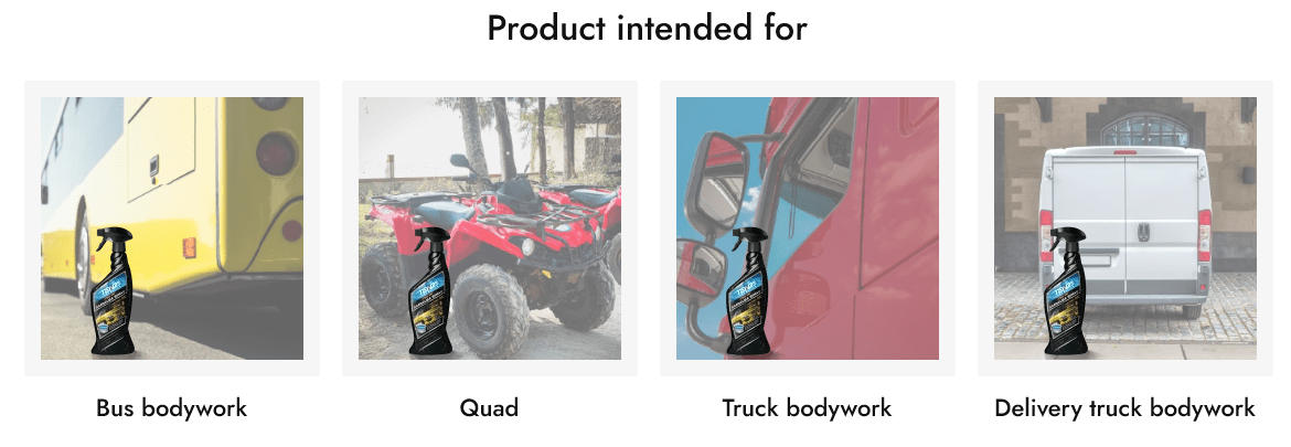 Zaradi enostavne uporabe v spreju je idealen za hitro osvežitev po pranju, kot tudi za vzdrževanje med voskanji ali po keramični zaščiti. Primeren je za vse vrste barv in lakov, brez tveganja za sledi ali madeže. Ključne lastnosti: