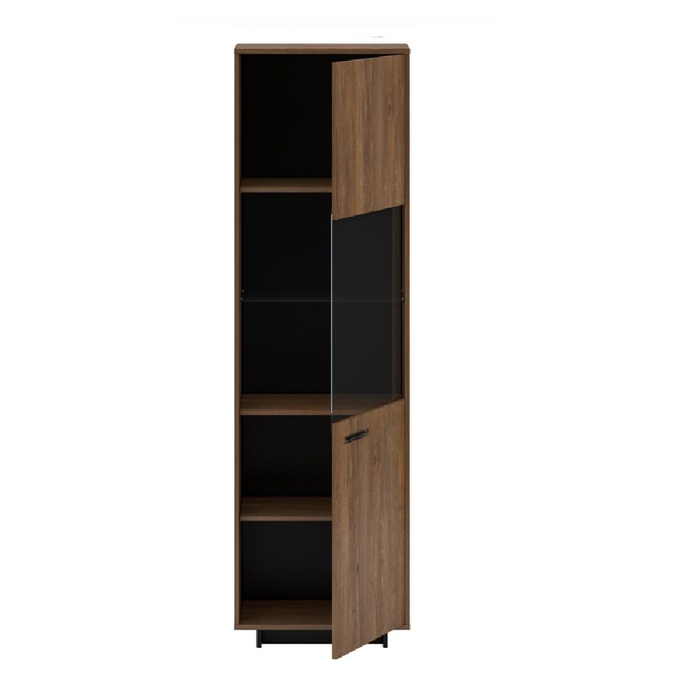 Enovratna vitrina Delis A2 je moderen kos pohištva, ki bo v vaš interier vnesel stil in eleganco. S temno barvo hrasta bolzano in črnimi detajli se poda v vsak prostor, naj bo to dnevna soba, spalnica ali pisarna.