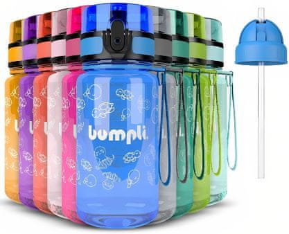 Bumpli Otroška Flaška za Vodo 350 ml s Ustnikom in Slamico, Neprepustna, Brez BPA (modra) | BLUEBOT