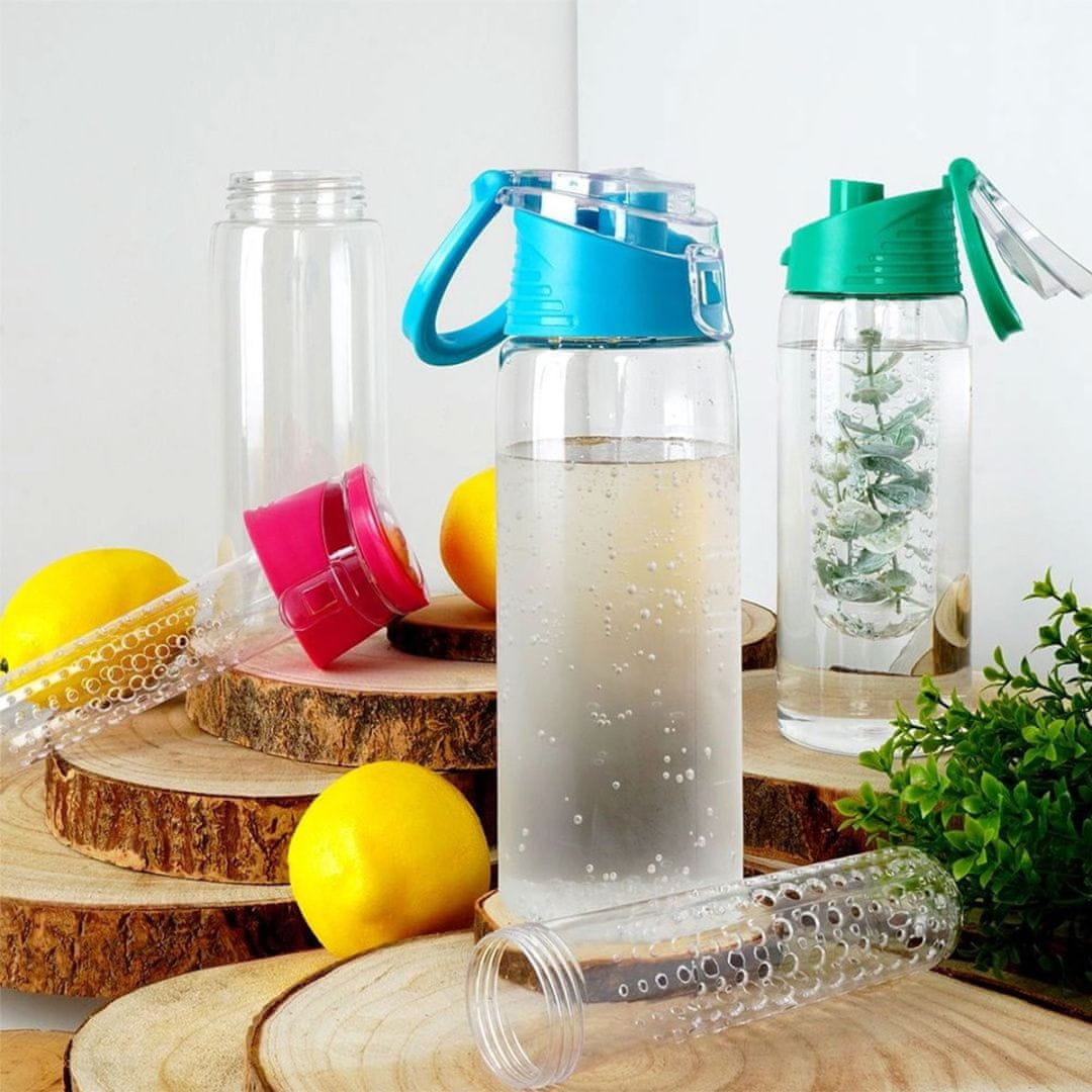 Steklenica za vodo z vložkom za sadje. Zasnovano za pripravo lastne vode z okusom sadja. Izdelano iz trpežne plastike.