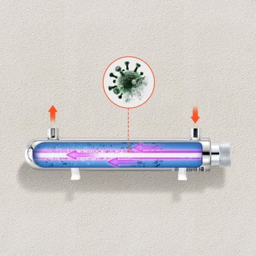 Ta UV veepuhasti pakub tõhusat ja usaldusväärset ultraviolettset steriliseerimist kogu maja vee töötlemiseks. Disainitud vastupidava roostevabast terasest korpuse ja kaitsekvartsist varrukaga tagab see ohutu kemikaalivaba vee joogiks duši all käimiseks ja puhastamiseks. Süsteem on lihtne paigaldada ja hooldada pakkudes pikaajalist jõudlust ja järjepidevat vee kvaliteeti teie majapidamises.