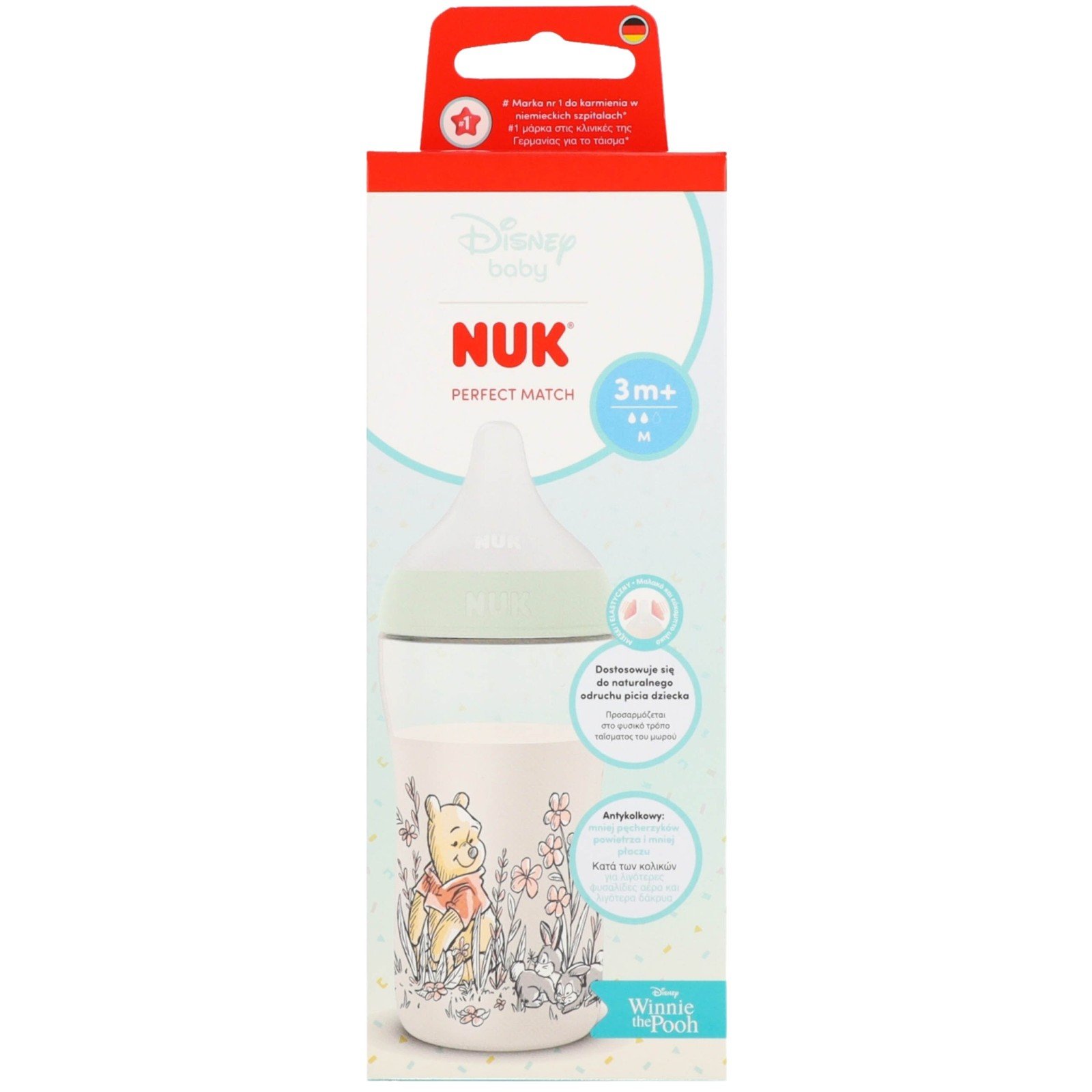 Disney DISNEY Medvedek Pu NUK Varna steklenička za hranjenje, proti koliki, silikonski dudek 260ml 3m+