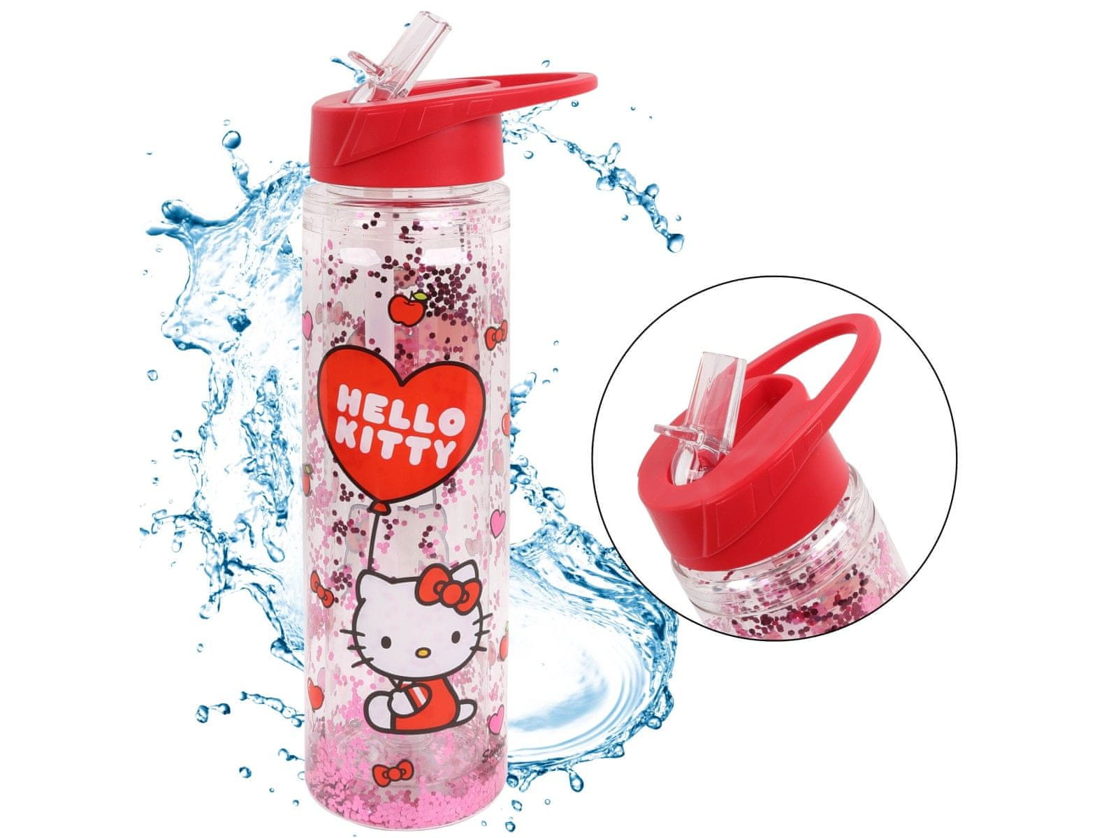 HELLO KITTY Hello Kitty Plastična steklenica s slamico, prozorna steklenica za vodoa 550ml