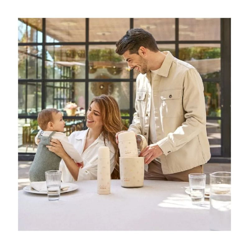 Miniland Dolce Termoobla je posebej zasnovana za starše dvojčkov ali za tiste, ki potrebujejo prenašati več steklenic. S to termooblo s prostornino 500 ml boste ohranili temperaturo dveh steklenic hkrati. Znotraj se nahaja izvlečni separator, ki steklenice varno ločuje in preprečuje njihovo prevrnitev ali poškodovanje. Če potrebujete več prostora, ga preprosto odstranite.