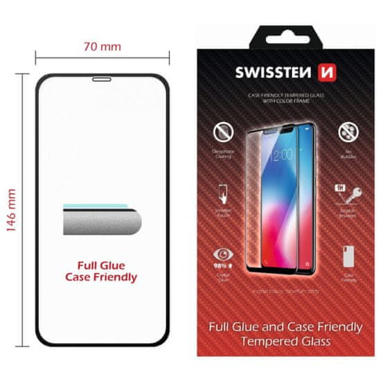 SWISSTEN Swissten Full Glue, Color frame, Case friendly, Zaščitno kaljeno steklo, Apple iPhone XR, črno