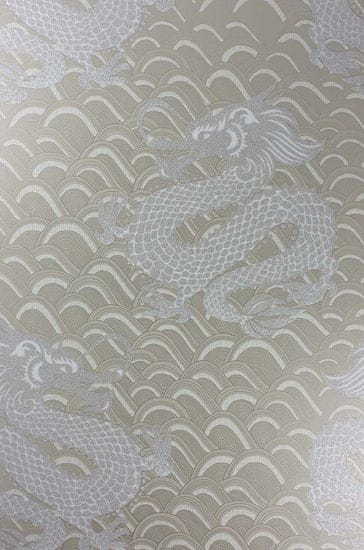 Kitajski zmaj je dramatično poudarjen z mejami. Vzorec se ponovi v dolžini 64 cm. 1 zvitek – 10 mx 52 cm. Celoten opis