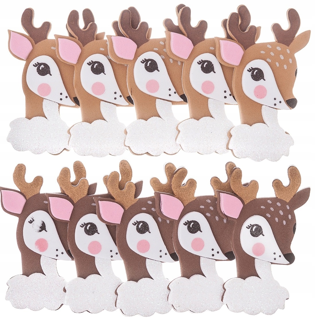 Nalepke iz pene z bleščicami v obliki jelenov v dveh barvah so odlične za razvijanje otroške ustvarjalnosti; odlične so tudi za božične obrti.