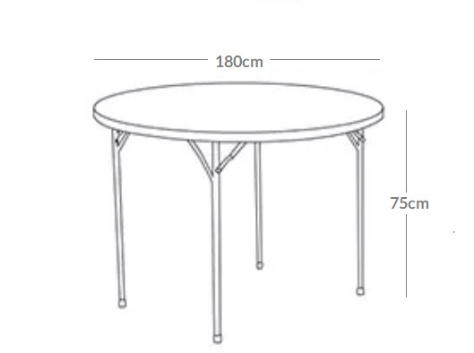 Ponujena prevleka je namenjena za mize s premerom zgornjega dela 180 cm in višino 75 cm.
