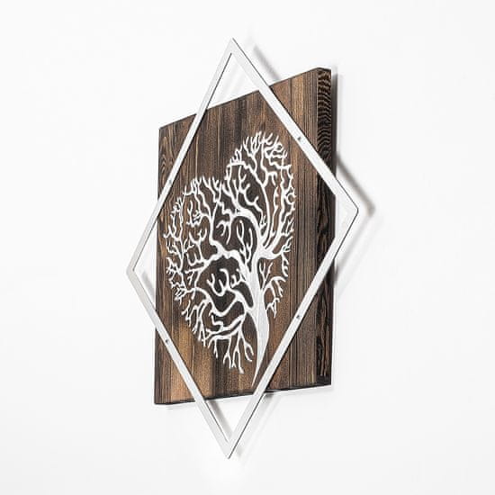 50 % les (debelina: 3 cm) – 50 % kovina (debelina: 1,5 mm) Velikost: 54 × 54 cm Lahko se pritrdi na steno
