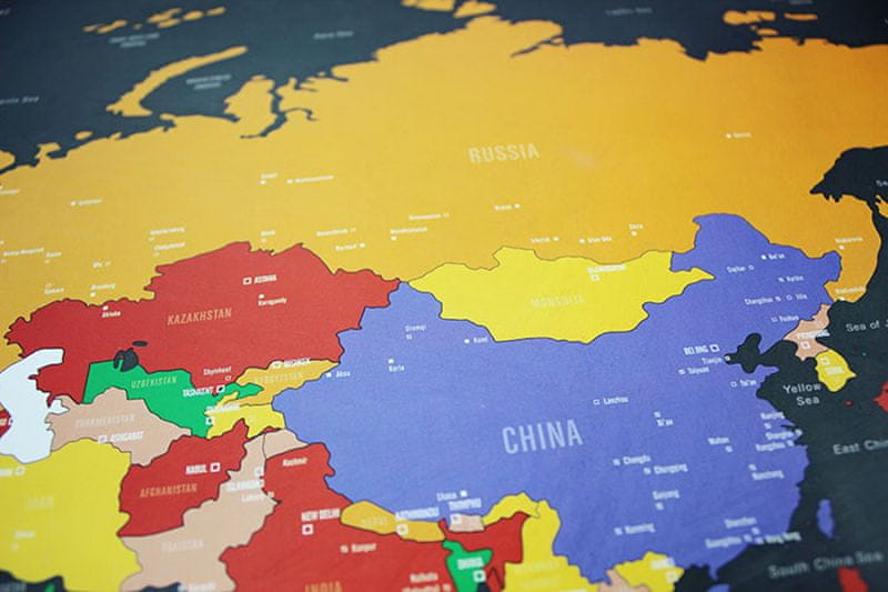 Eleganten zemljevid oblečen v črno folijo. Izjemno velika velikost, ki bo zagotovo polepšala vsak interier ali pisarno. Nova ekstravagantna črna barva