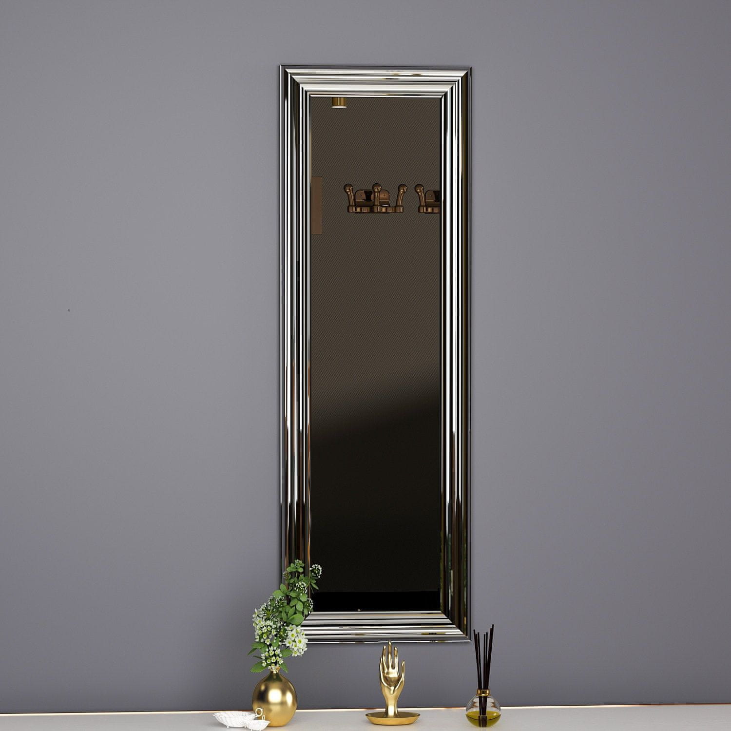 100 % MDF Zrcalo v srebrnem okvirju Širina: 30 cm Višina: 90 cm Globina: 3 cm Ekološko ogledalo Flotal-E Lahko se pritrdi na steno
