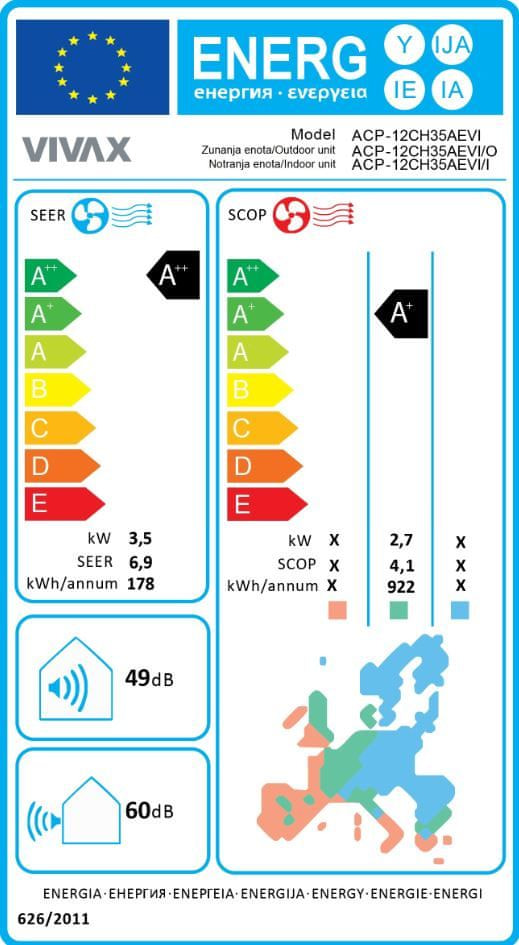 Stenska klimatska naprava Vivax ACP-12CH35AEVI z dizajnom v zlati barvi vas bo prepričala z visokim izkoristkom z nizko porabo. Zmogljivost hlajenja znaša 3520 W, gretja pa 3810 W. Celoten opis