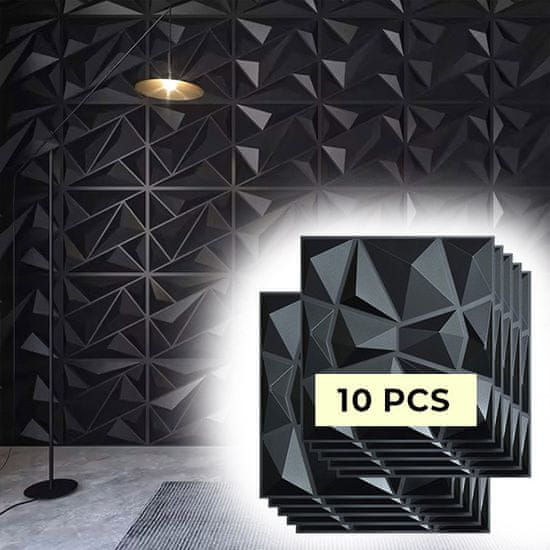 Material: PVC Velikost: 30cm x 30cm (približno) Barva: Črna Vsebina paketa: 10 x stenska plošča