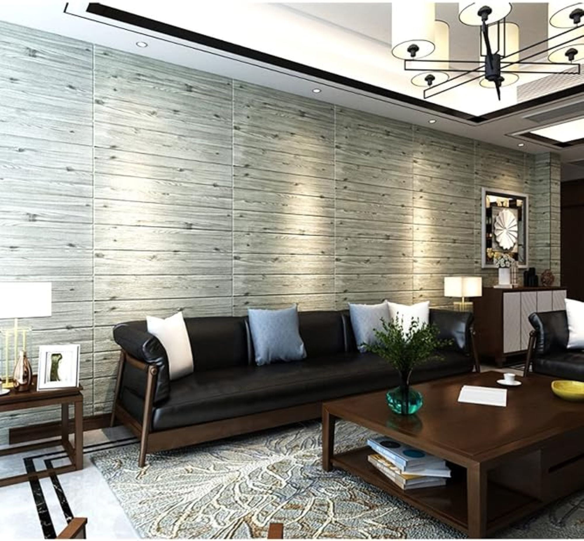 HOME & MARKER® 3D Stenske nalepke, Samolepilne nalepke, Imitacija Lesa, Vodooporne (Siva, 5 kosov, 70 x 70 cm) | INSTAWOOD