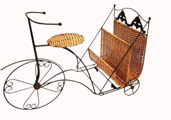 Stojalo za časopis, rože, kolo, pleteno in kovinska osnova