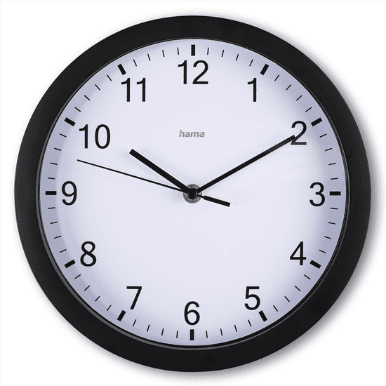 Hama Elba, stenska ura, premer 25 cm, tihi tek, črna