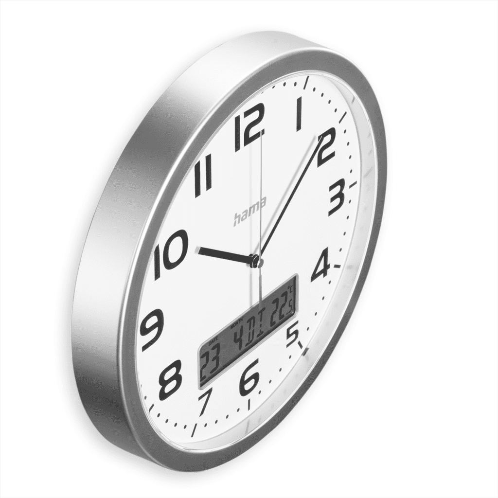 Hama Moorea, stenska ura z radijskim signalom, datumom in temperaturo, premer 30 cm, srebrna