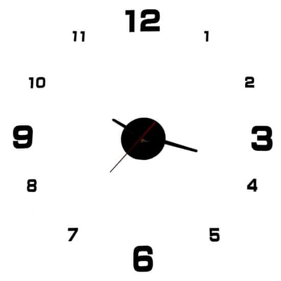 O velikosti ure odloča VAŠ premer od 70 cm do 130 cm. Enostavna montaža na steno zahvaljujoč samolepilnim elementom. Ure so namenjene za montažo na gladke stene. Ura so napajana s palično baterijo – ni vključena v paketu. Celoten opis