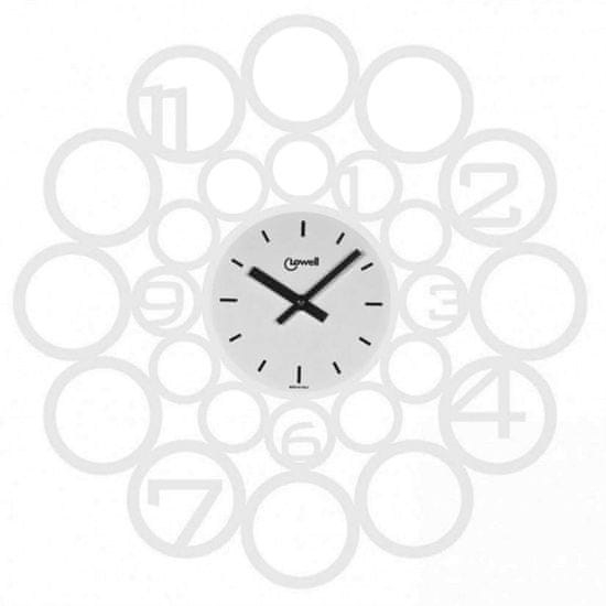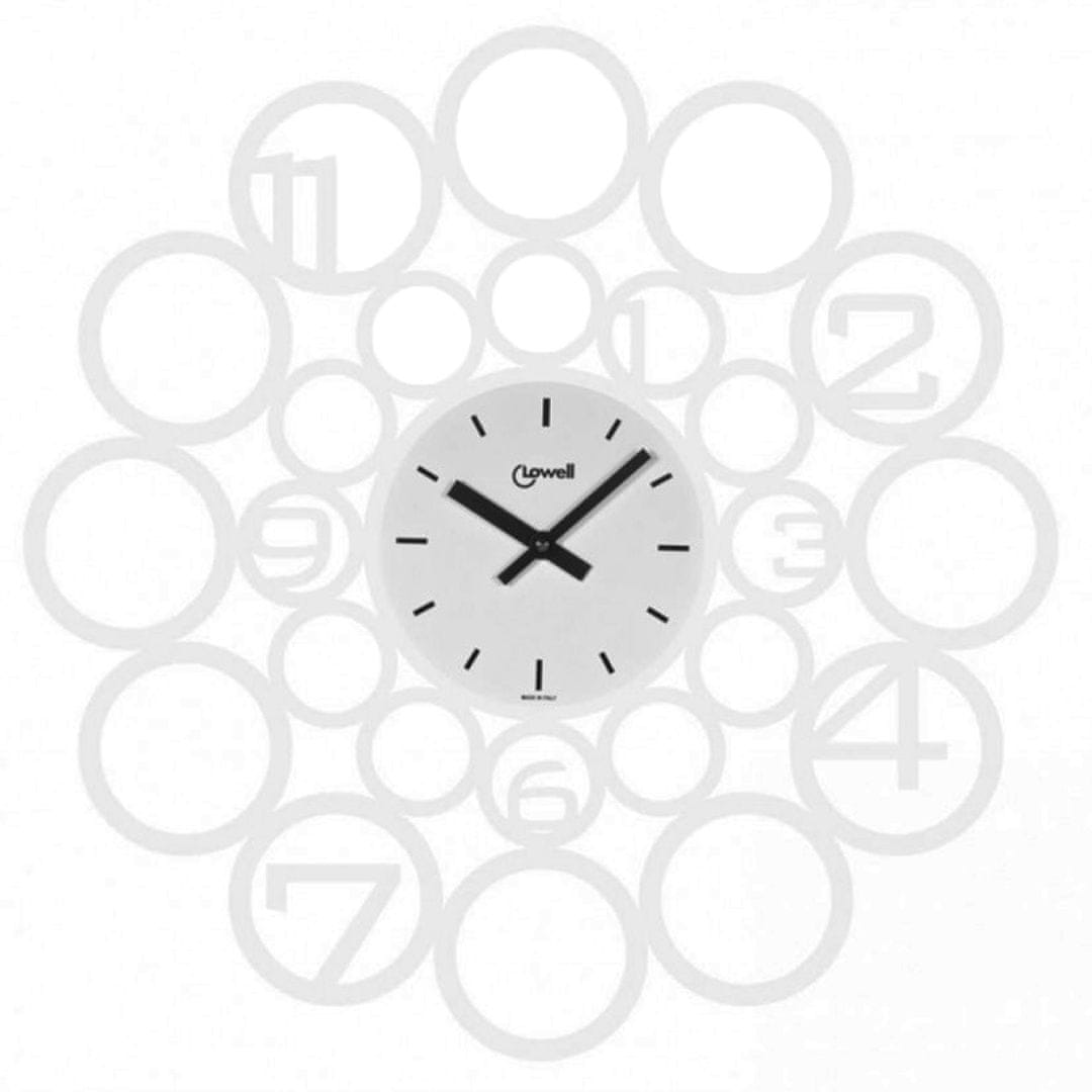 Stenska ura Metal je bila dizajnirana v ustvarjalnem laboratoriju Lowell, ki vsako novo uro spremeni v fascinantno potovanje skozi čas. Krogi različnih velikosti ustvarjajo okroglo obliko premera 50 cm in dajejo unikaten videz. Kovinsko ogrodje dopolnjujejo arabske številke in črni kazalci. Zaradi bele barve bo ura lepo pristajala na temnejši oz. barvni podlagi. Zagotovo je idealen dodatek za opremljanje modernega stila, ki se ne odreka eleganci. Kvarčni mehanizem deluje na baterijo 1× AA 1,5V, ki ni priložena.