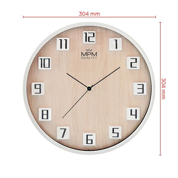 Plastična stenska ura MPM Quality se bo odlično podala v vsak interier, ne glede na to, ali jo boste obesili v dnevni sobi, na hodniku, v kuhinji ali v manjši sobi. Kocke z dvignjenimi številkami so zanimiv oblikovalski podvig. Celoten opis
