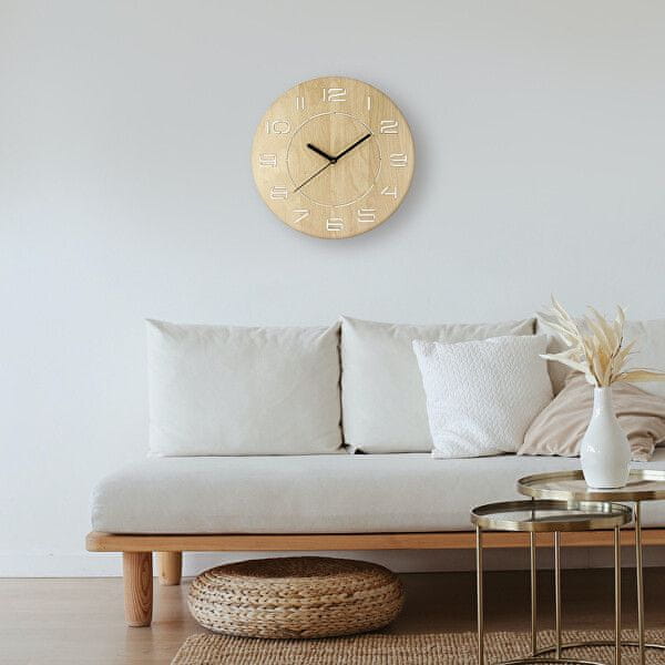 Klasična okrogla ura MPM je zanesljiva stava v vseh pogledih. Ura je izdelana iz skrbno obdelanega svetlega lesa. V njih gladko tekoče kremenčevo gibanje poganja roke. Impresivne so tudi zvišane številke.