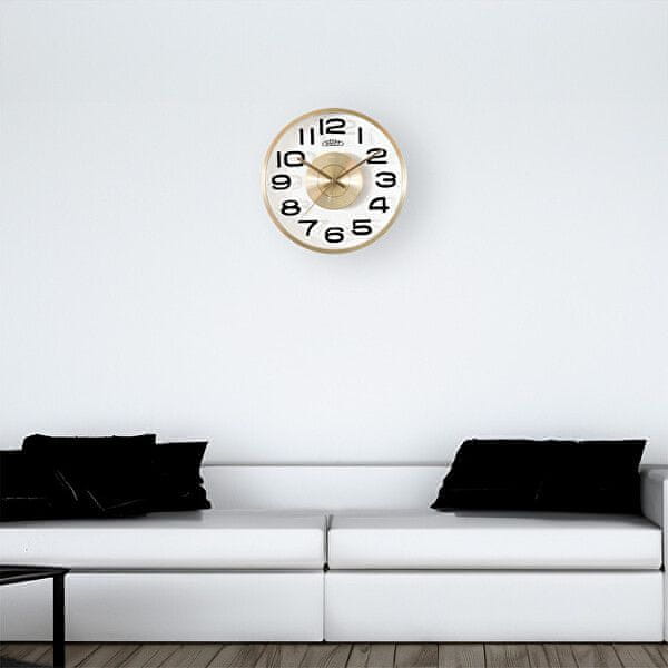 Ura Prim design navdušuje s pozlačenimi elementi in velikimi številkami. Gibanje rok je gladko.