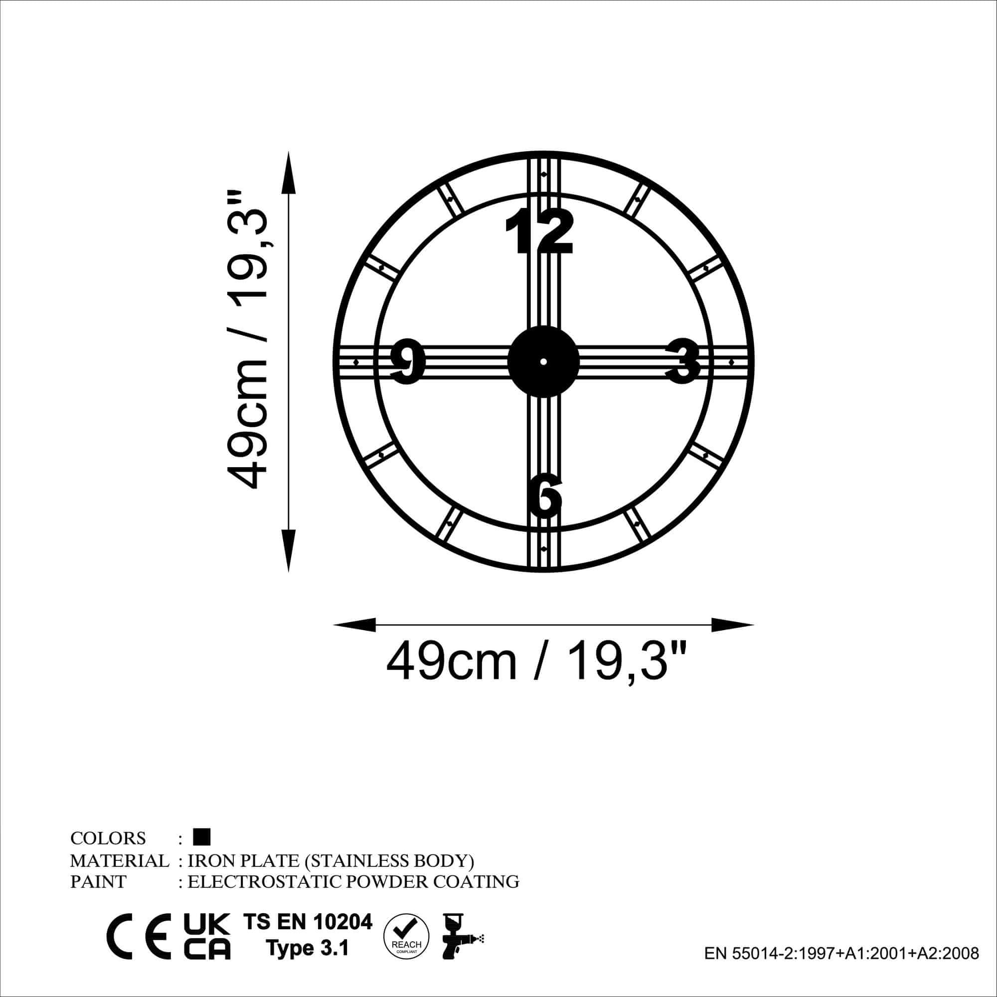 100 % KOVINA (debelina: 1,5 mm) Velikost: 49 × 49 cm Izdelek je mogoče obesiti na steno, ker je za njim kos