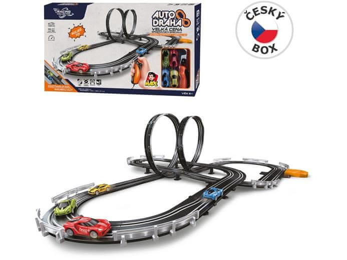 Racing Collection bo razveselil vsakega malega dirkača in avtomobilskega navdušenca. Uživali bodo v hitri vožnji in s dvema kontrolerjema organizirali dirke s svojimi sorojenci ali prijatelji. Preprosto sestavite 700 cm dolgo progo in se odpravite na pot. Vaši potomci lahko progo otežijo in ustvarijo strme zavoje in klance. Paket vsebuje 4 različne barvne avtomobile, zato lahko izbere „dirkalnik“ v svoji najljubši barvi in začne dirkati. Kdo bo hitrejši, se spopadel z zahtevnimi odseki in prvi prišel do cilja?