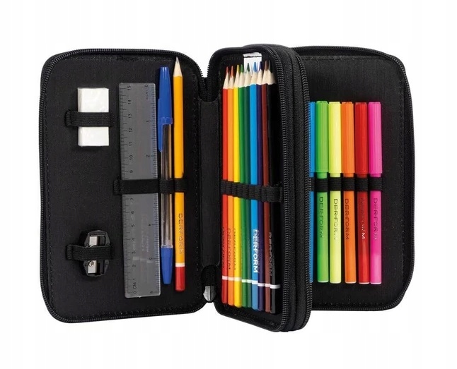 Izdelan iz vodoodpornega poliestra , opremljen z 2 prostornima predelkoma , zadrgami z velikimi jezički in celotnim kompletom šolskih pripomočkov – to je že pripravljena rešitev za nahrbtnik vsakega učenca.