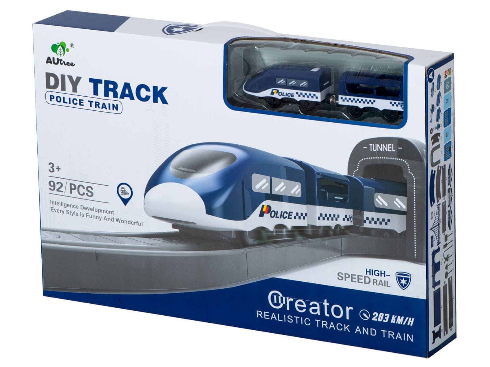 WOWO Električni vlakec s policijskimi avtomobili - Električni vlakec s policijskimi avtomobili, 92 elementov, 300 cm