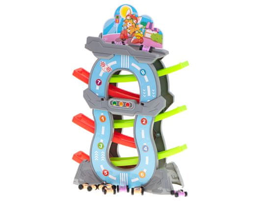 CAR SLIDE ZA AVTOMOBILE Fantastičen avto tobogan bo navdušil vsakega malega štirikolesnega navdušenca. Organizirajte tekmovanje in poglejte, čigav avto bo hitrejši! Sprejmi izziv in podiraj avto. Na poti boste doživeli vznemirljive skoke iz enega nadstropja v drugo. Oglejte si, kako natančno gre avto skozi vsako nadstropje. Pustite se prenesti vznemirljivi pustolovščini. Steza je sestavljena iz 6 različnih barvnih ravni. Čudovita igrača, ki bo poskrbela za veliko veselja in zabave. Proga ni samo odlična zabava, ampak tudi oblika učenja in podpore za pravilen razvoj otroka. Igranje s toboganom spodbuja logično razmišljanje in podpira razvoj otrokovih ročnih spretnosti. Poleg tega skupno igranje na tekmovanjih uči sodelovanja, učinkovite komunikacije ter zmagovanja in poraza. Odlično darilo za male ljubitelje avtomobilizma. Odlična zabava zagotovljena! Žive, bogate barve in pozornost do podrobnosti bodo navdušile vsakogar, tudi najzahtevnejšega strokovnjaka za ekstremno vožnjo. Vsebina seta: Steza 8× avtomobilčki TEHNIČNI PODATKI: Dimenzije: pakiranje: 26 cm x 8 cm x 38 cm steza: 32 cm x 9 cm x 48 cm Avtomobili: 4 cm x 3,5 cm x 1,3 cm