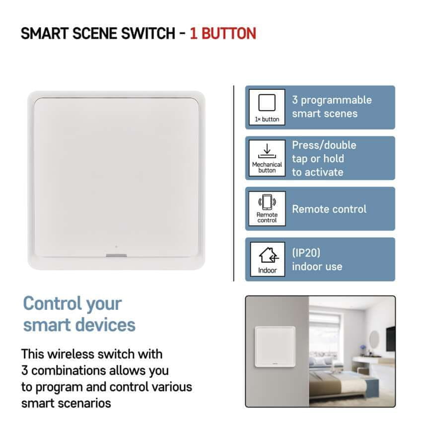 Vsak od dodatnih gumbov prepozna tri položaje - standardni enkratni pritisk, dvojni pritisk ali daljše pridržanje gumba. Tako dobite skupaj 3 kombinacije, da lahko nastavite in udobno nadzorujete svoj dom.