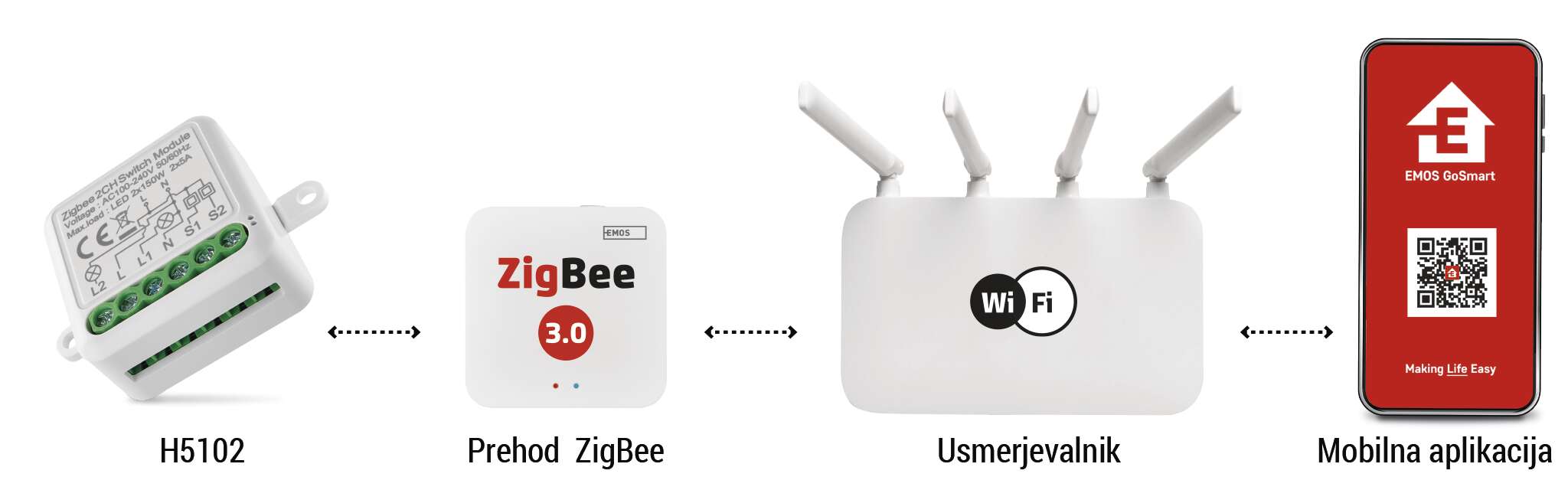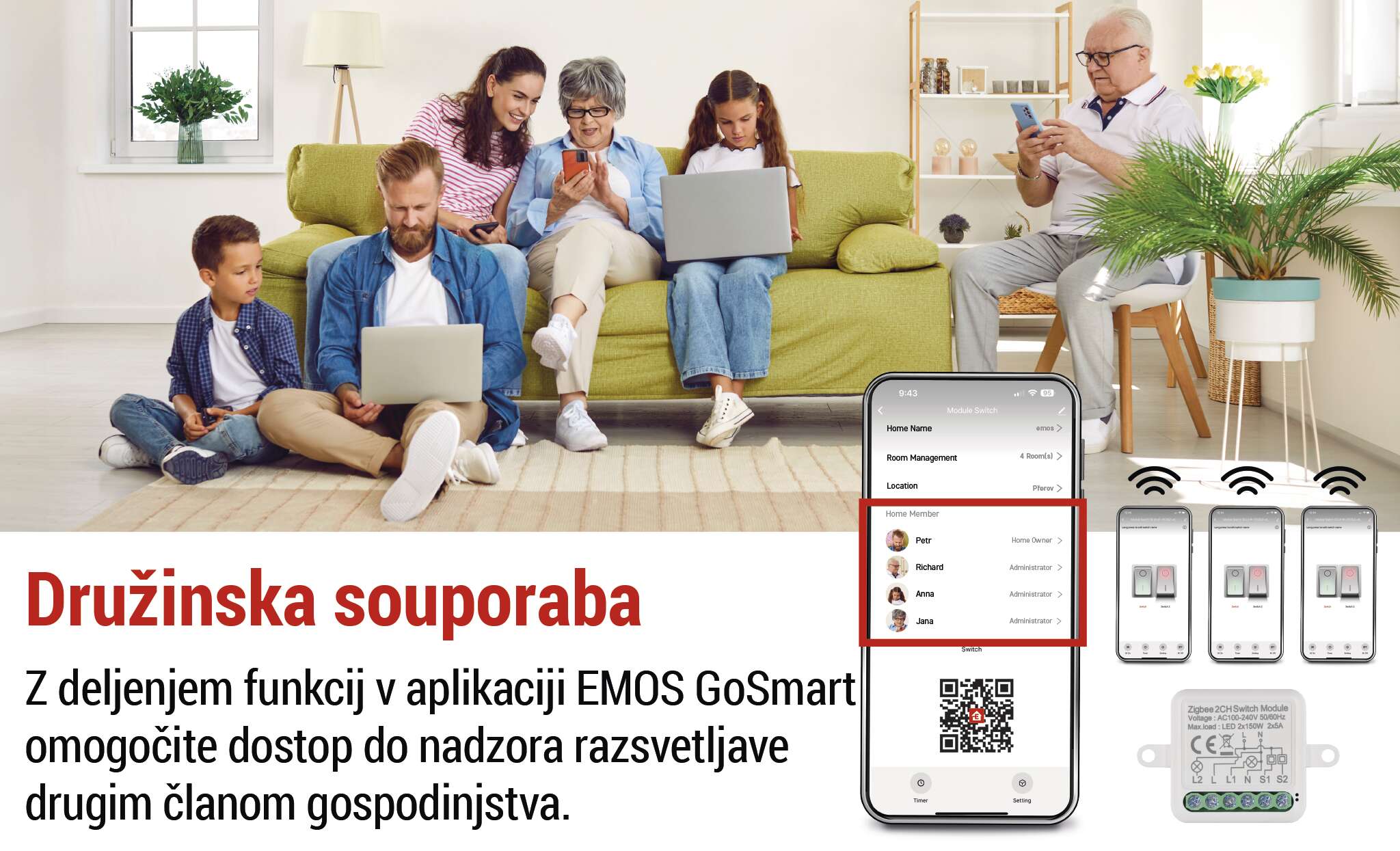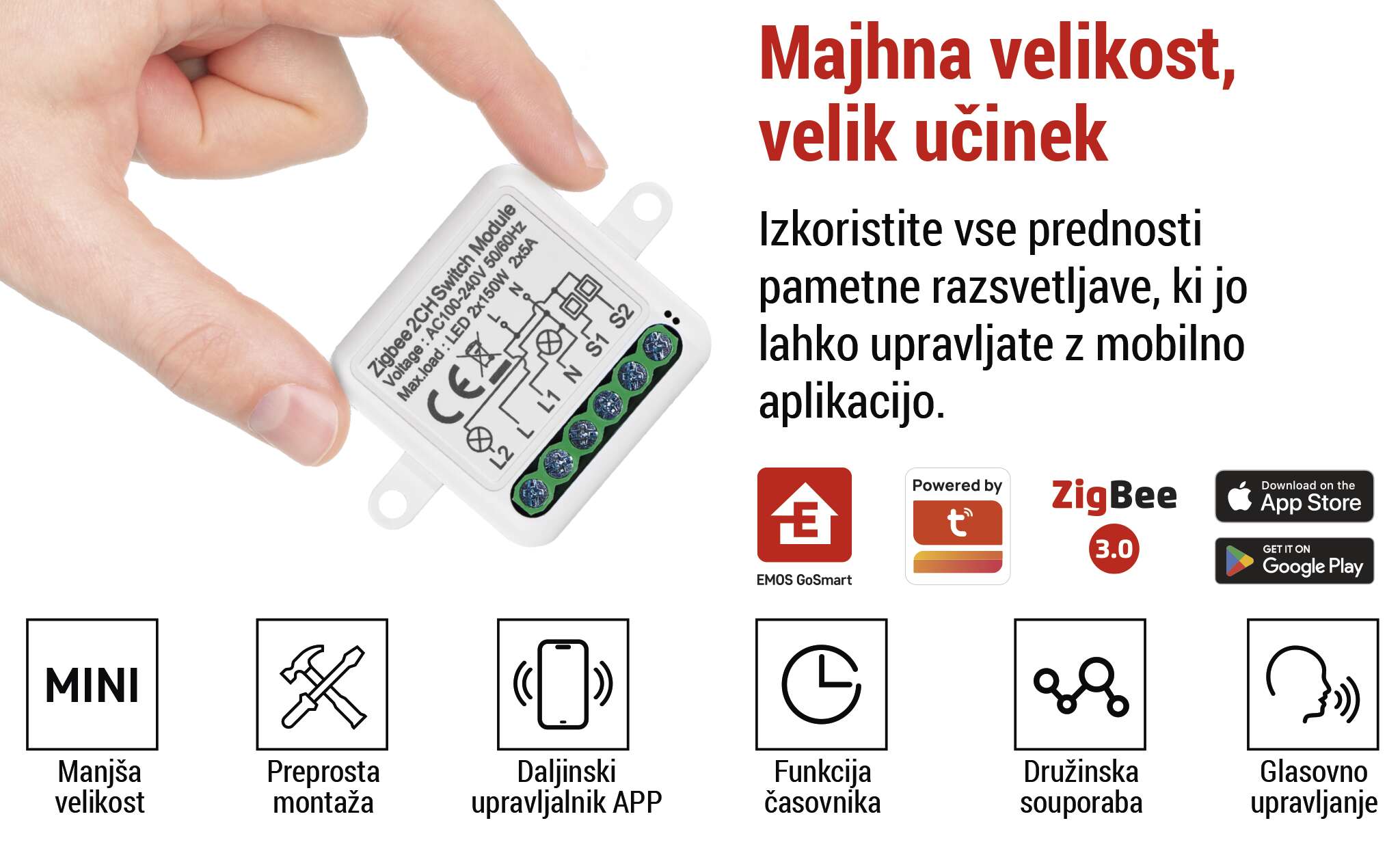 Modul upravljajte s prehodom ZigBee in ga seznanite z mobilno aplikacijo EMOS GoSmart, ki je na voljo za Android in iOS. Ker so moduli stalno napajani, delujejo tudi kot razširjevalnik signala ZigBee, kar vam omogoča upravljanje še večjega števila naprav ZigBee v enem omrežju.