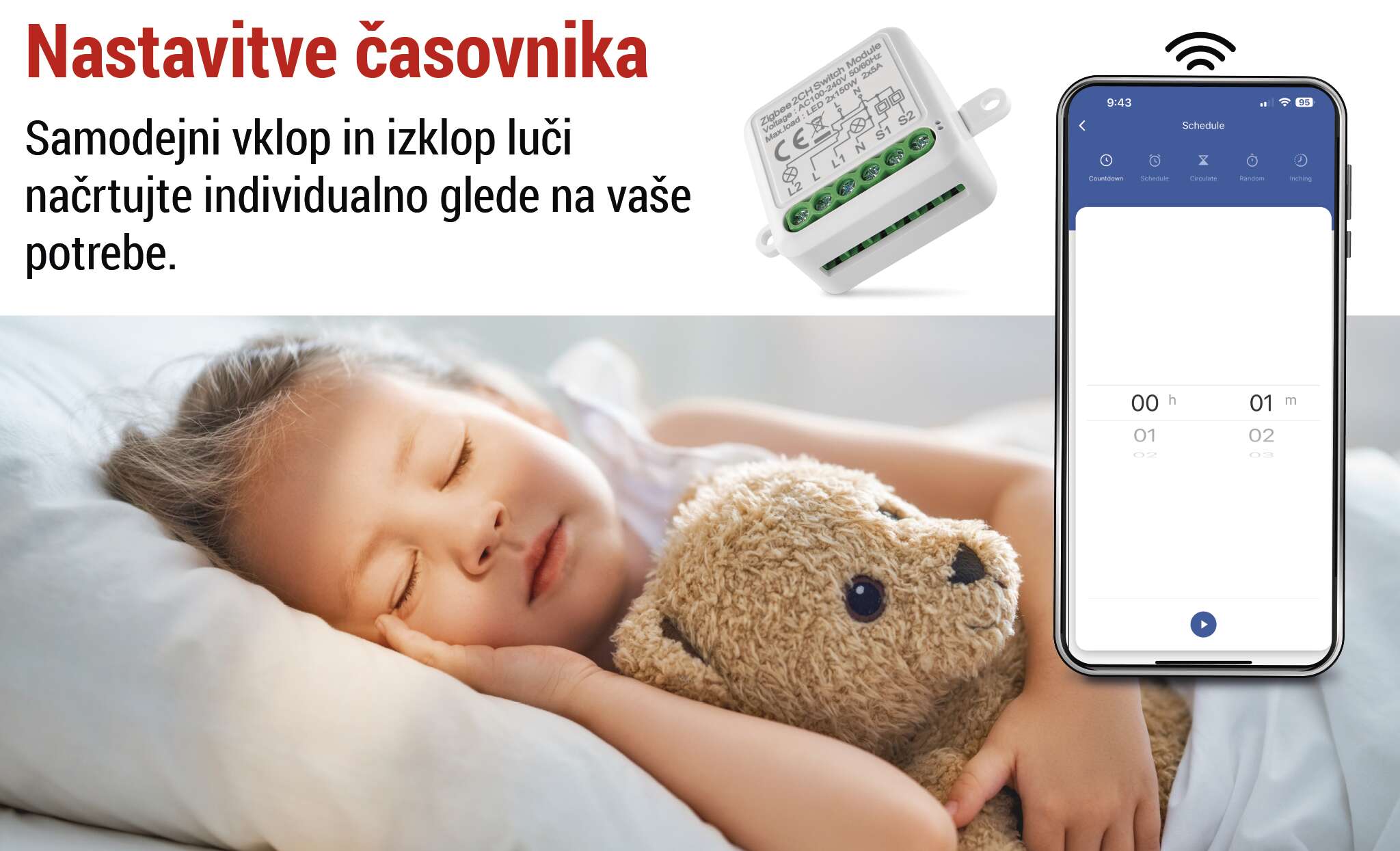 Pametni modul lahko povezujete z drugimi napravami v vašem domu (ure, luči, senzorji vrat, oken, ogrevanja). Po povezavi z mobilno aplikacijo EMOS GoSmart lahko avtomatizirate in načrtujete čas za posamezne naprave. Na primer avtomatsko prižgite luči, ko ste na počitnicah. Ustvarite inteligentni dom, ki se prilagaja vašim potrebam.