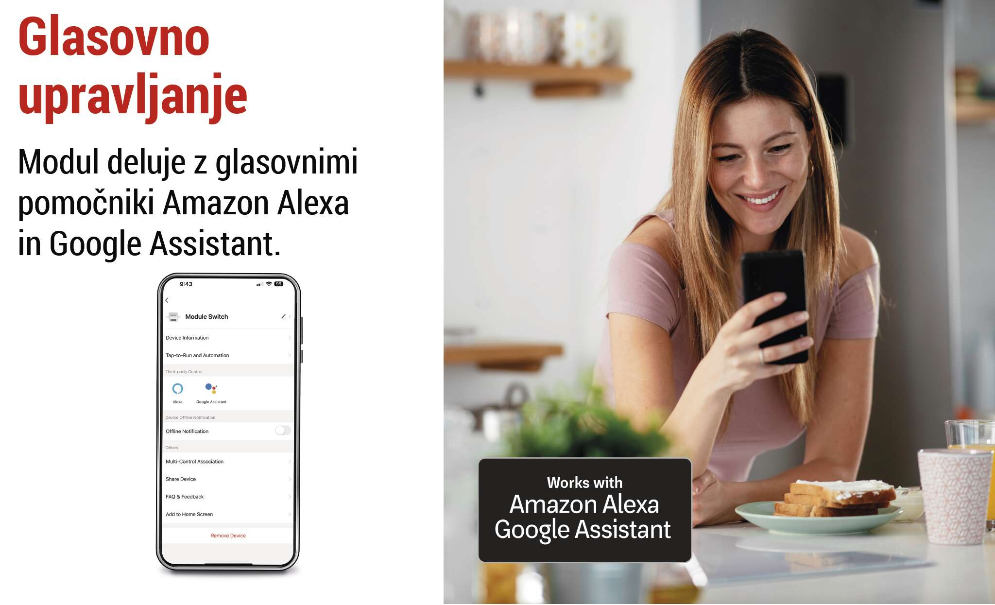 - Združljiv z glasovnimi pomočniki Google Assistant in Amazon Alexa