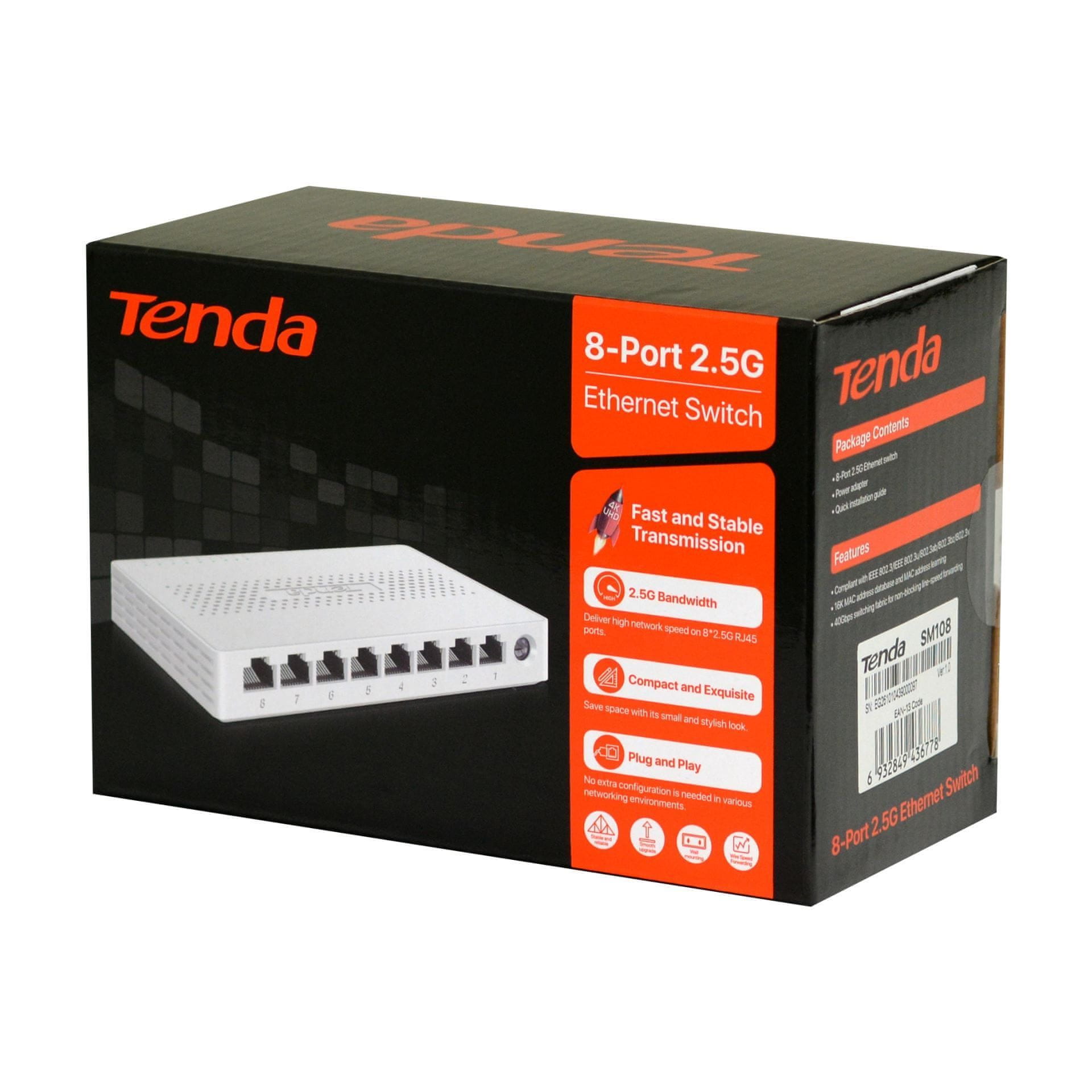 Tenda stikalo SM108 ponuja hitrost kar 2,5 gigabitov na vseh osmih portih in se lahko poveže z računalniki, NAS, IPTV, WIFI7AP. Omogoča hitrejšo prenašanje podatkov in dosega izjemno nizko zakasnitev. Idealna izbira za mala in srednja podjetja, šole, majhne pisarne, za nadgradnjo gigabitnega omrežja.