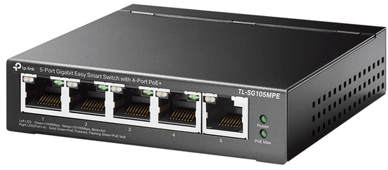 TL-SG105MPE je zmogljivo gigabitno omrežno stikalo, zasnovano za majhna podjetja, nadzorne sisteme in pisarniška okolja. Opremljen je s petimi gigabitnimi RJ45 priključki, od katerih štirje podpirajo standard 802.3af/at PoE+, kar omogoča napajanje in prenos podatkov prek enega samega omrežnega kabla. Skupna moč PoE znaša do 120 W, kar zagotavlja dovolj energije za napajanje več IP kamer, dostopnih točk, IP telefonov in drugih združljivih naprav brez potrebe po dodatnih napajalnikih.