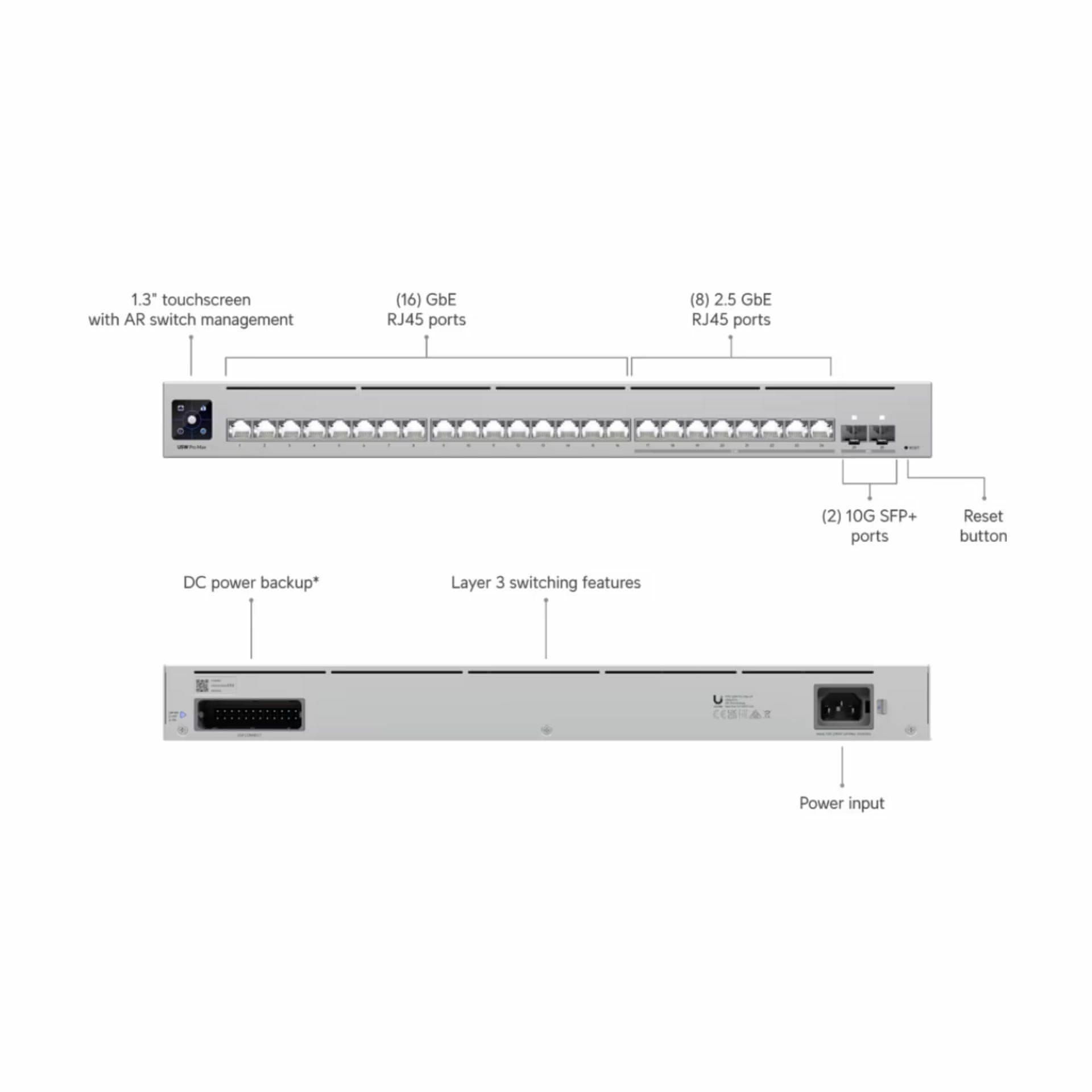 Ubiquiti USW-Pro-Max je Layer 3 stikalo s 24 ethernet priklopi in 1,3-palčnim zaslonom na dotik. Idealen za uporabo v podjetjih in na lokacijah, ki zahtevajo stabilno in hitro povezavo.