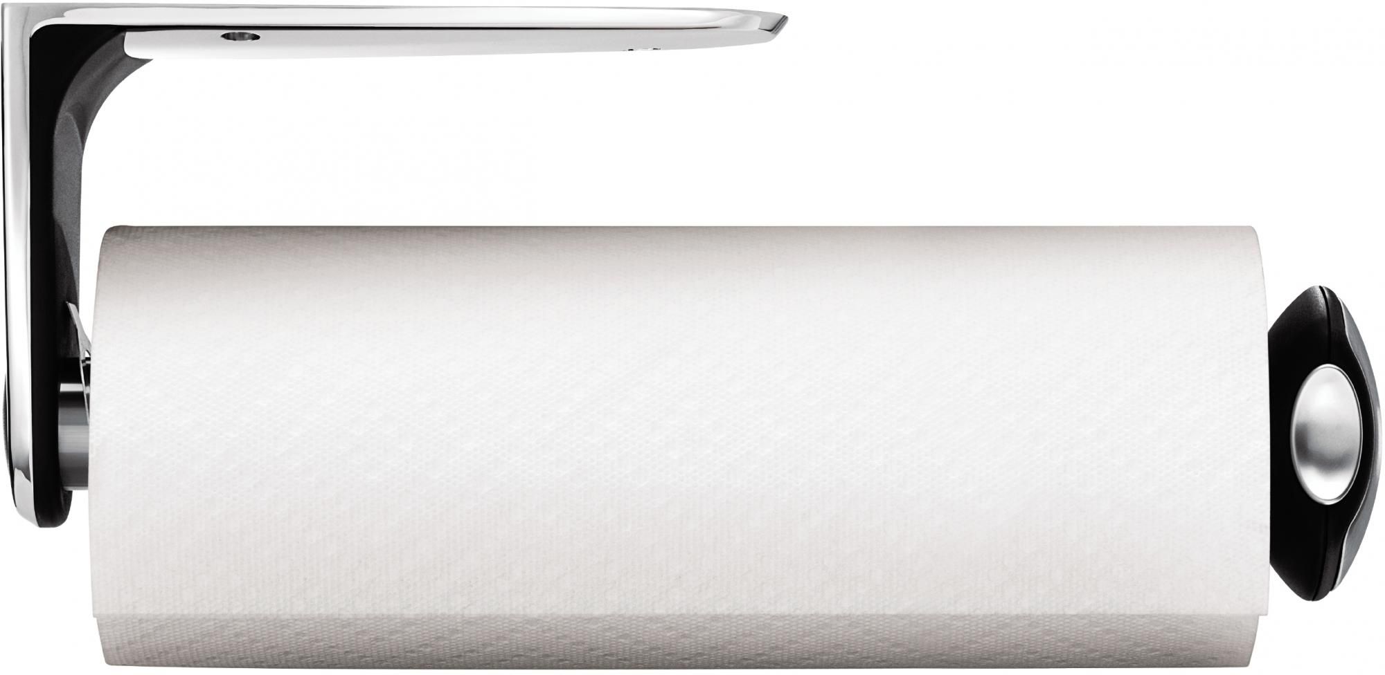 Priročno jekleno držalo za papirnate brisače. Zasnovan za montažo pod kuhinjsko omarico. Popoln za majhne kuhinje, saj prihrani dragocen prostor na pultu. Neinvazivna namestitev s samolepilnim trakom.