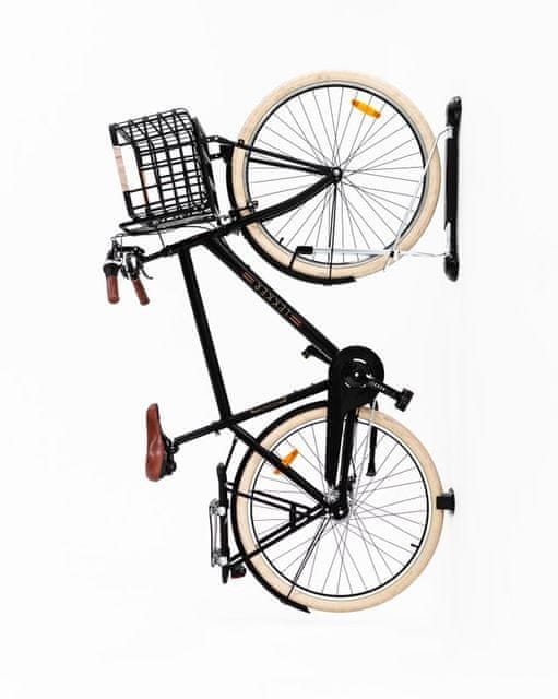 Steadyrack vrtljiv stenski nosilec za kolo prihrani prostor v vaši kolesarnici ali domu. Steadyrack Fender vrtljiv stenski nosilec za kolesa z blatniki vam omogoča enostavno in varno shranjevanje vašega kolesa. Primerne je za kolesa, ki imajo zelo majhen razmik med prednjo pnevmatiko in spodnjim delom prednjega okvirja. Nosilec je zasnovan tako, da enostavno zdrsne v to majhno režo – kolo se na nosilec nasloni s pnevmatiko in ne z okvirjem.