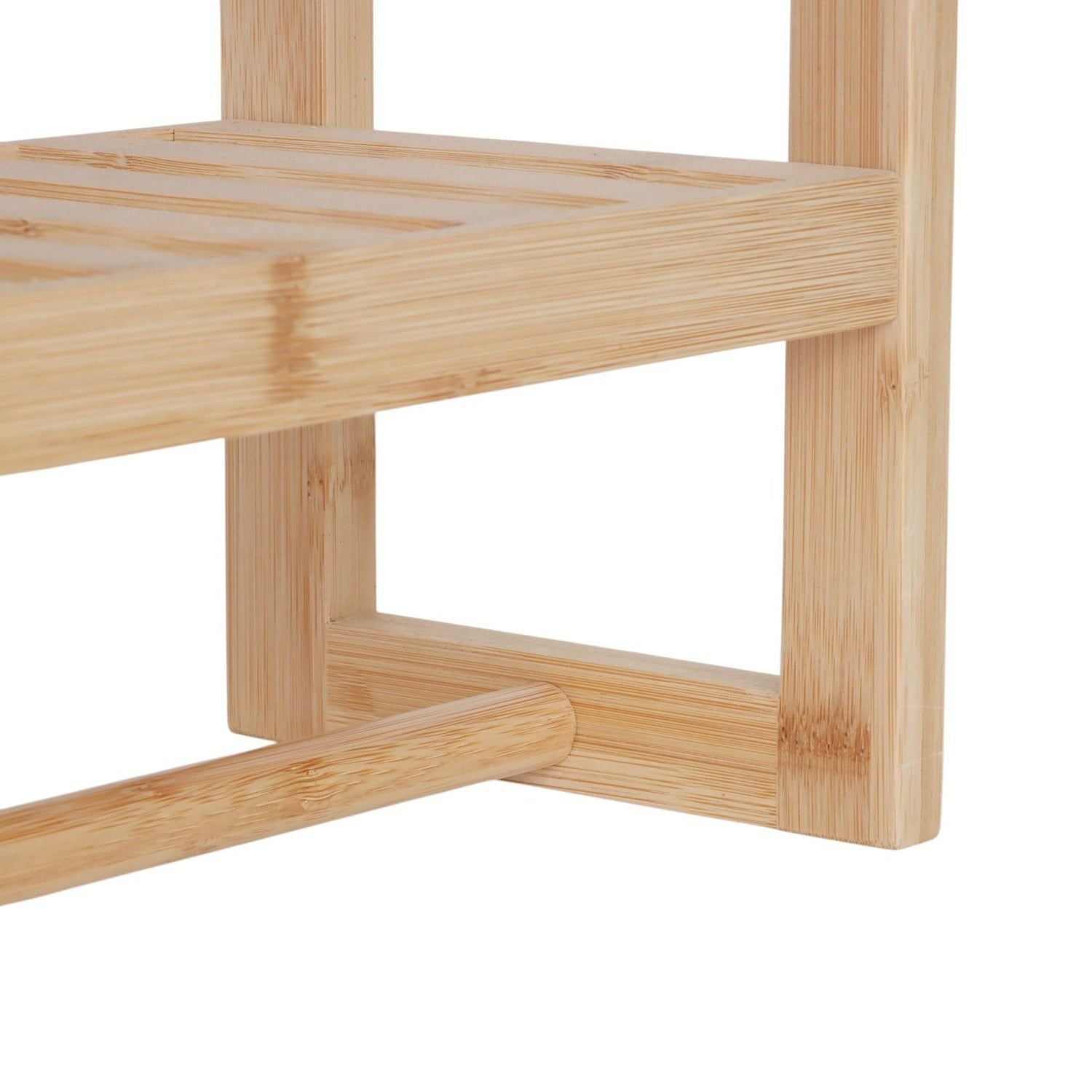 Bambusova polica z obešalnikom za brisače omogoča maksimalno shranjevanje v majhnih prostorih in ponuja vsestransko organizacijo za kopalnice ali kuhinje.