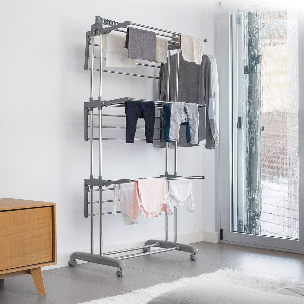 Northix Zložljivo stojalo za sušenje na kolesih - velika kapaciteta