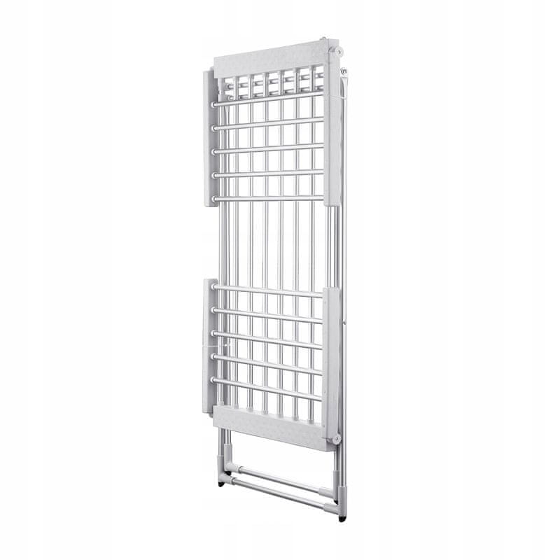 Električni sušilnik/stojalo za perilo je odlična rešitev za vsak dom. Naprava bo perilo sušila hitro in učinkovito, ne glede na sezono ali vreme. Uporablja se lahko tudi kot tradicionalno stojalo za perilo – brez napajanja. Model je opremljen s plastičnimi nogami za zaščito tal pred praskami. Naprava se zloži v kompaktno velikost, kar olajša prenašanje in shranjevanje.