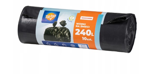 Črne vreče za smeti TIP TOP s prostornino 240 litrov so namenjene nesortiranim ali mešanim odpadkom, ki jih ni mogoče uvrstiti v drugo kategorijo, kot so embalaža zdravil in kozmetike, razbita posoda, uporabljene plenice, papirnate brisače in robčki, oblačila in še marsikaj. Narejeni so iz trpežne folije iz plastike, ki jo je mogoče reciklirati, zato se ne strgajo pod težo zbranih materialov in so okolju prijazni. So perforirane za lažje trganje.