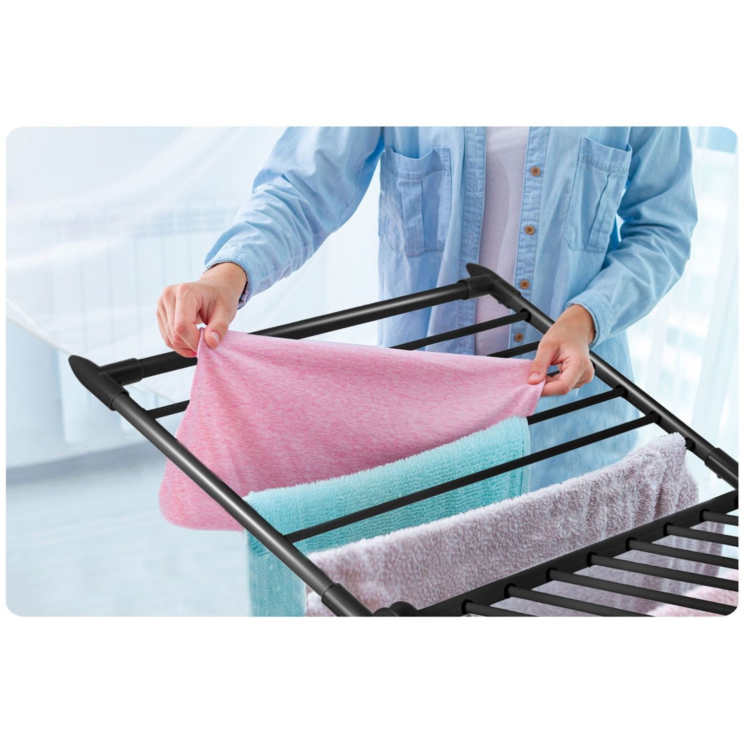 V sušilnem stroju Massido smo prečke dovolj razmaknili, da se perilo lahko izhlapeva in prosto suši. Zahvaljujoč ustreznim razmikom med prečkami voda hitro izhlapeva, perilo pa bo enakomerno posušeno in pripravljeno za zlaganje!