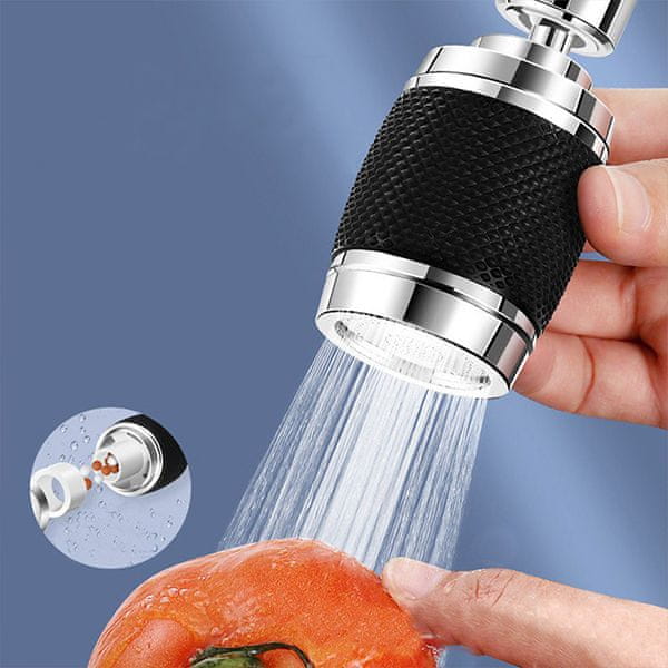Ta podaljšek za pipo lahko doseže vsak kotiček pomivalnega korita, zato bo čiščenje le tega enostavnejše. Olajša tudi umivanje sadja, zelenjave in podobno.