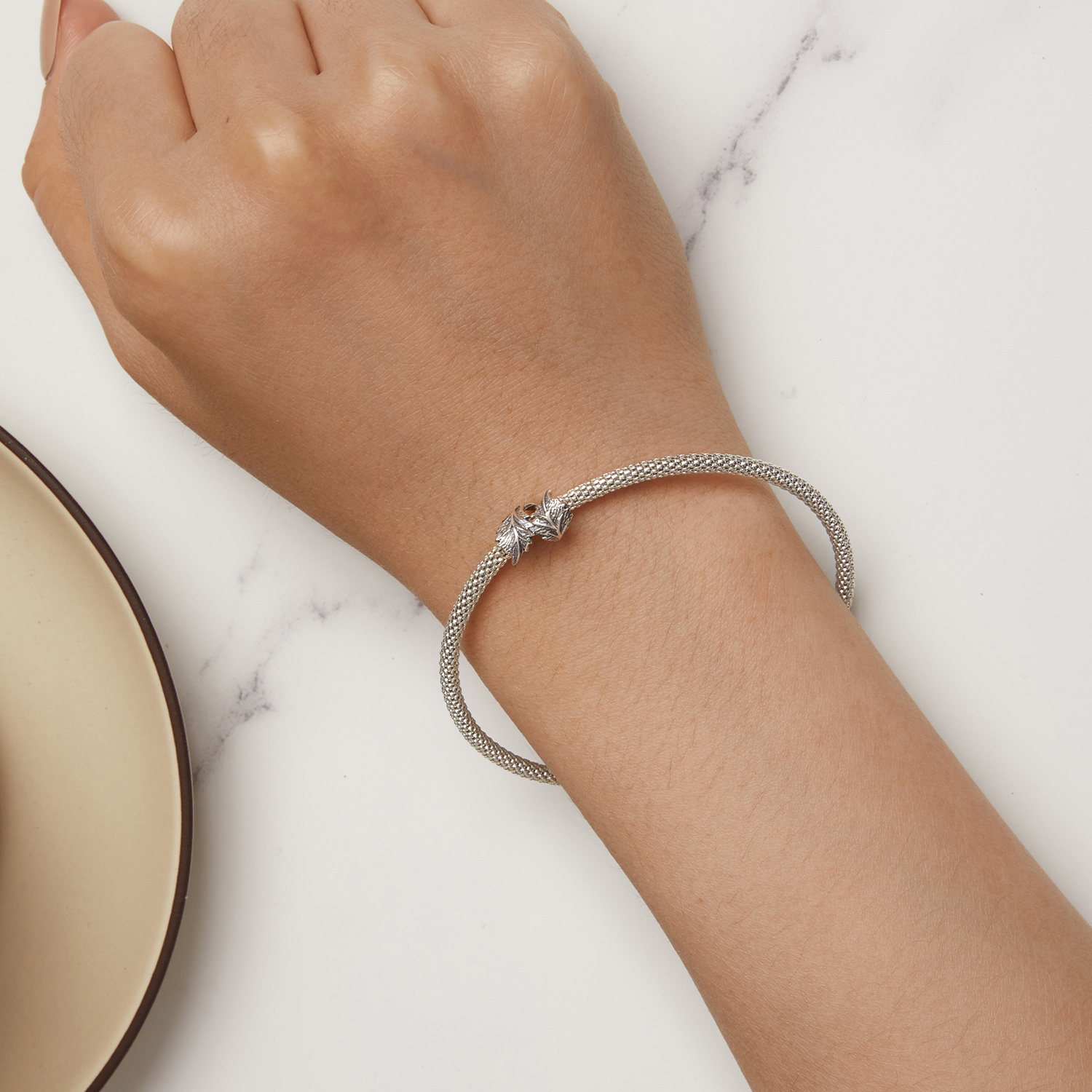 Edinstven obesek, izdelan iz iz 925 srebro, z upodobitvijo dveh srebrnih listov.