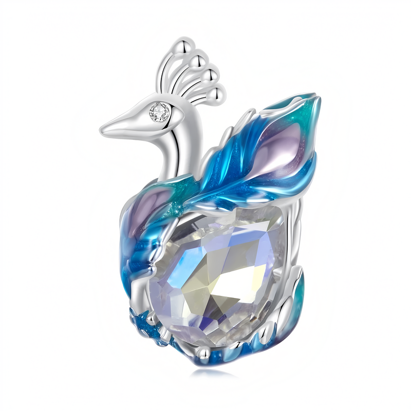 shumee Obeski za Pandora obesek s kristalom pav, srebro 925, Trusky Charms