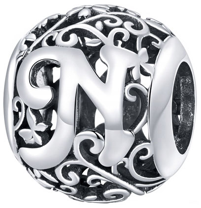 shumee Obeski za Pandora obesek s črko N, srebro 925